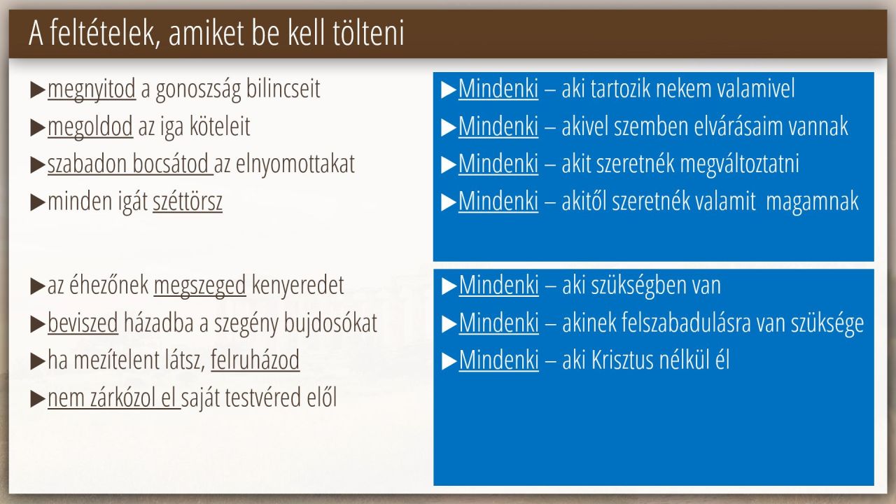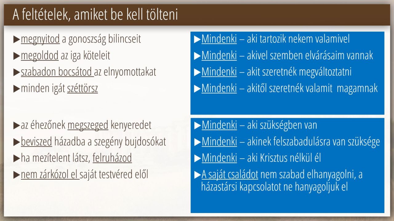 11 | A feltételek teljesítésének eredménye Ézsaiás 58:8-12-ben (1/6)