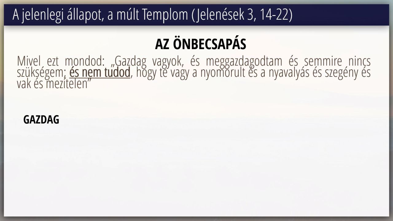 3 | A jelenlegi állapot, a múlt Templom (Jelenések 3, 14-22) (4/12)