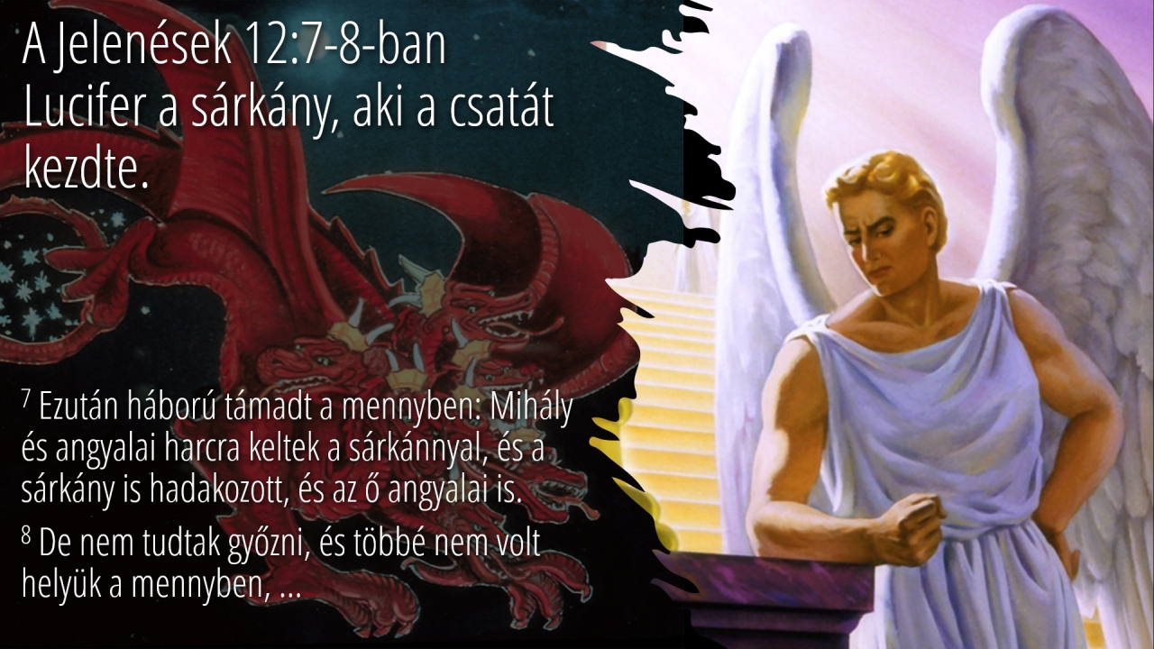21 | A Jelenések 12:7-8-ban Lucifer a sárkány, aki a csatát kezdte.