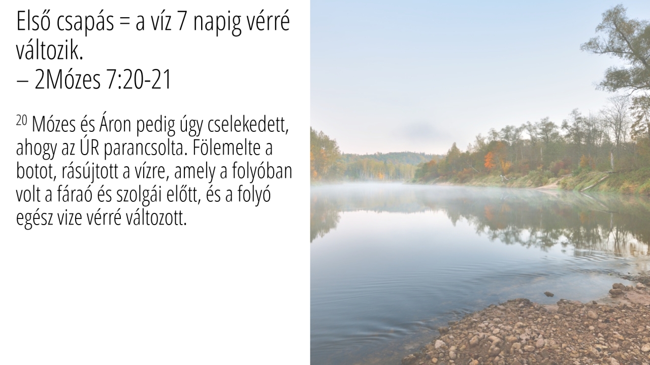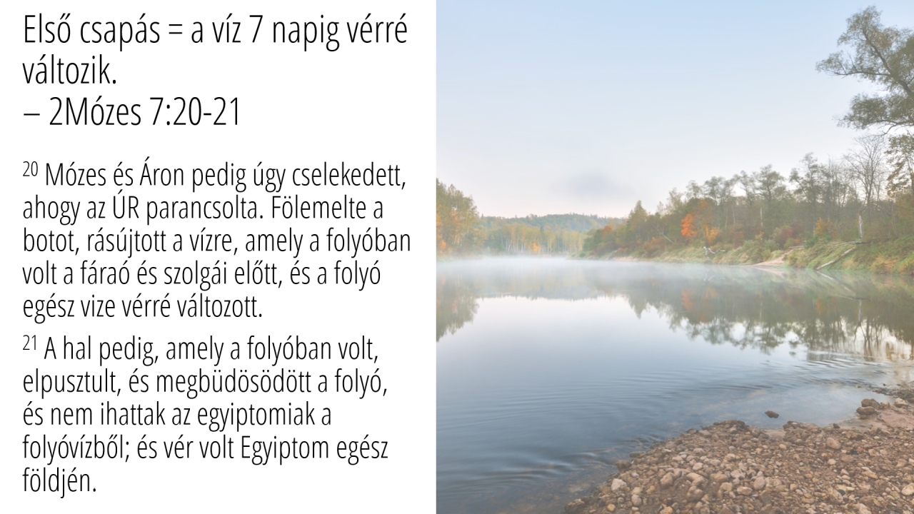 16 | Első csapás = a víz 7 napig vérré változik.– 2Mózes 7:20-21