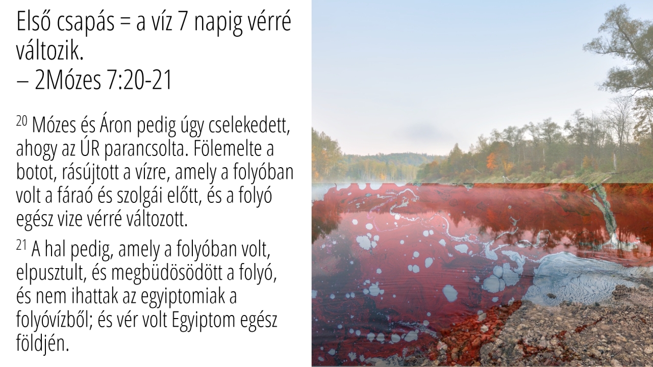 16 | Első csapás = a víz 7 napig vérré változik.– 2Mózes 7:20-21 (3/4)