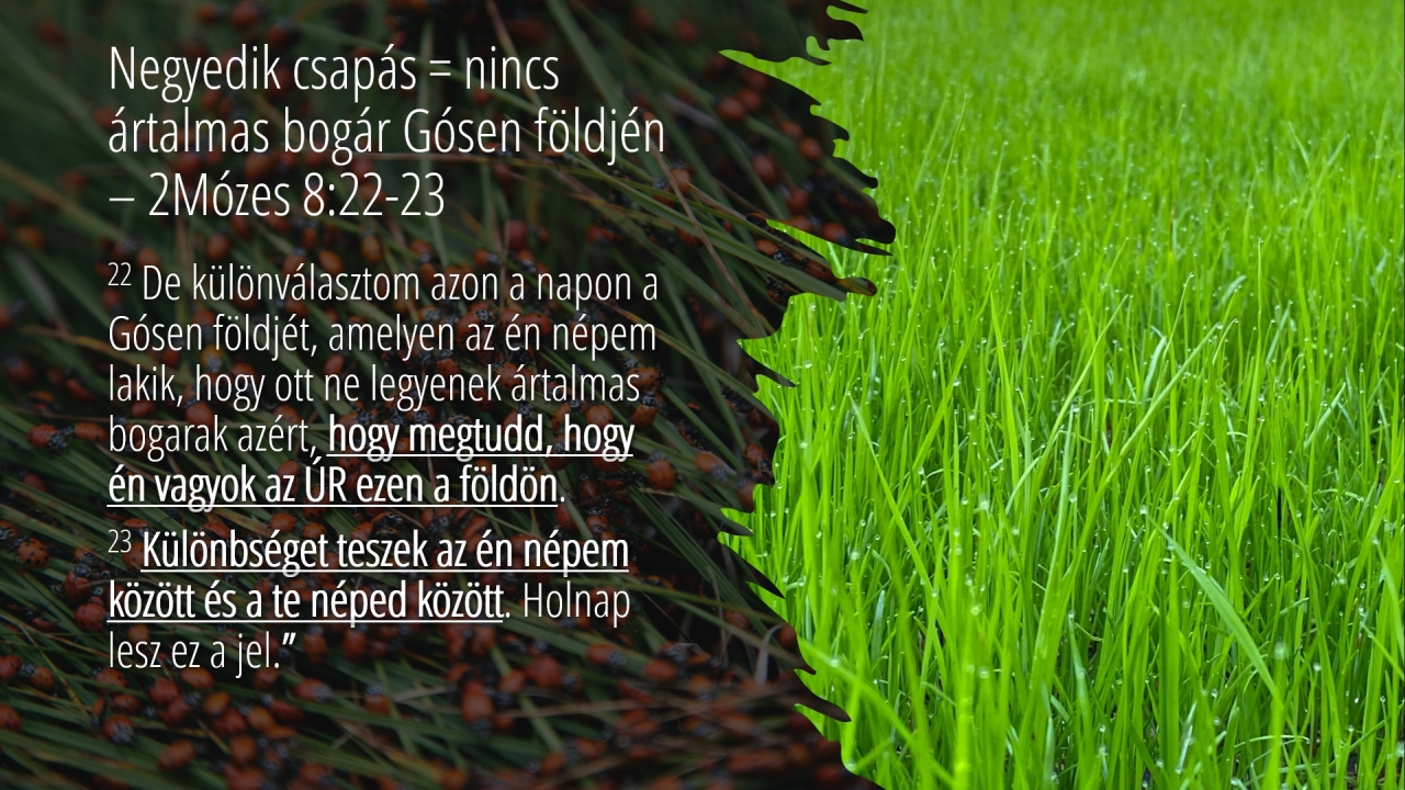 23 | Negyedik csapás = nincs ártalmas bogár Gósen földjén– 2Mózes 8:22-23