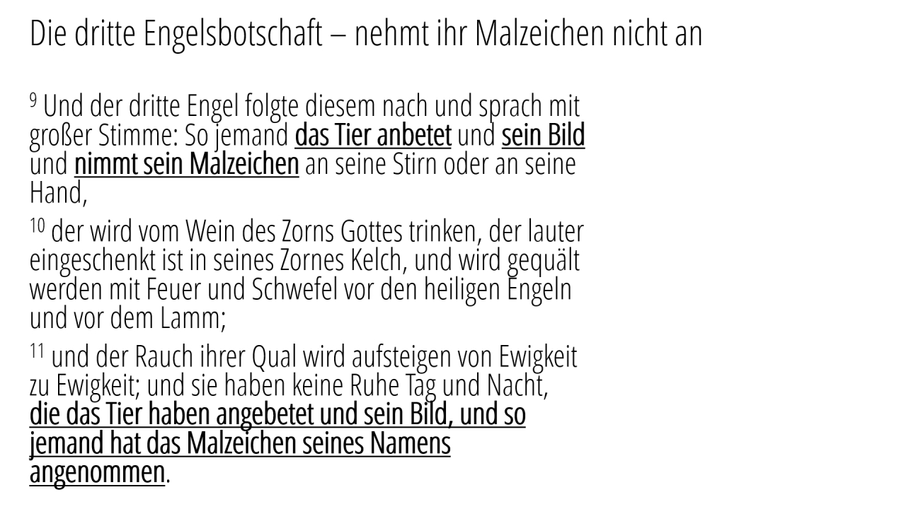 9 | Die dritte Engelsbotschaft – nehmt ihr Malzeichen nicht an (8/8)