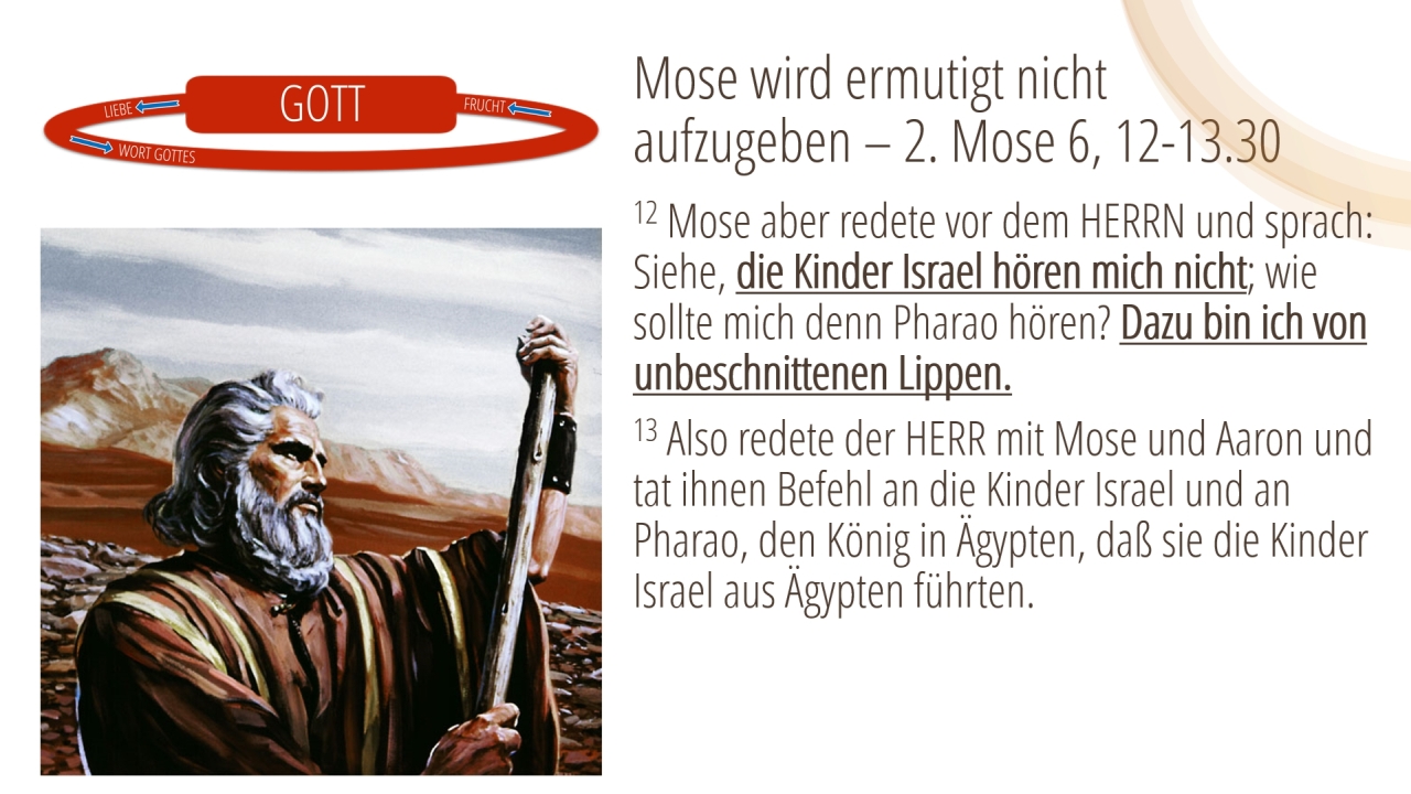 8 | Mose wird ermutigt nicht aufzugeben – 2. Mose 6, 12-13.30