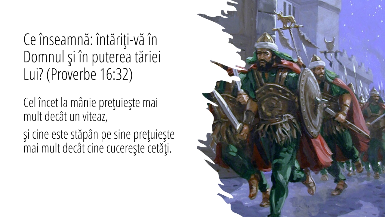 15 | Ce înseamnă: întăriţi-vă în Domnul şi în puterea tăriei Lui? (Proverbe 16:32)