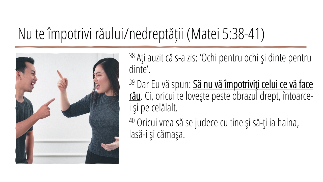 10 | Nu te împotrivi răului/nedreptății (Matei 5:38-41)