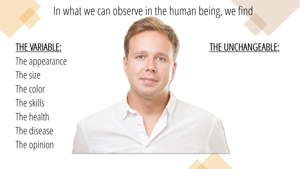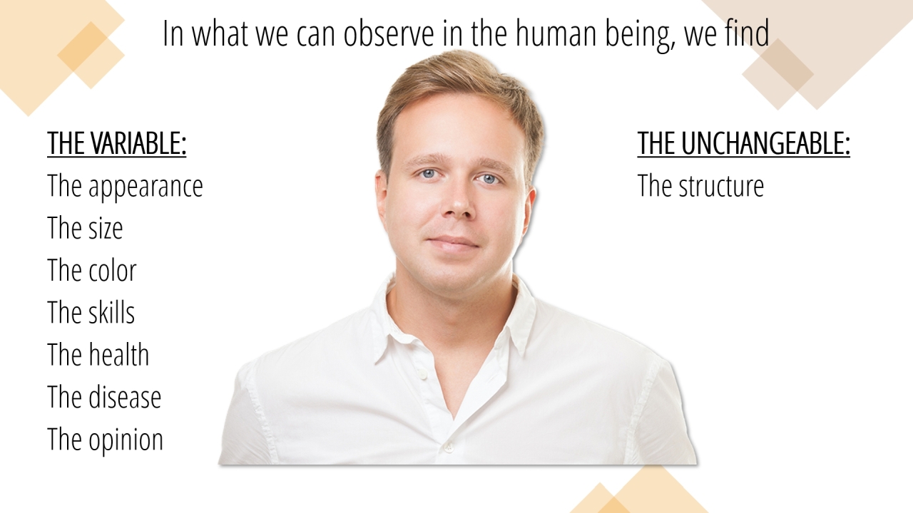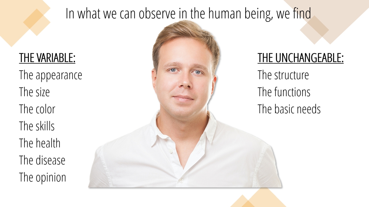 17 | In what we can observe in the human being, we find (1/10)