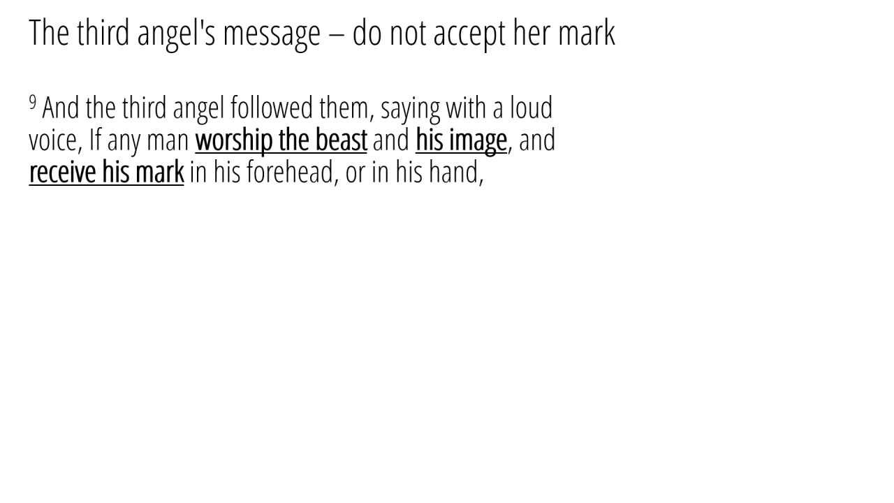 9 | The third angel's message – do not accept her mark