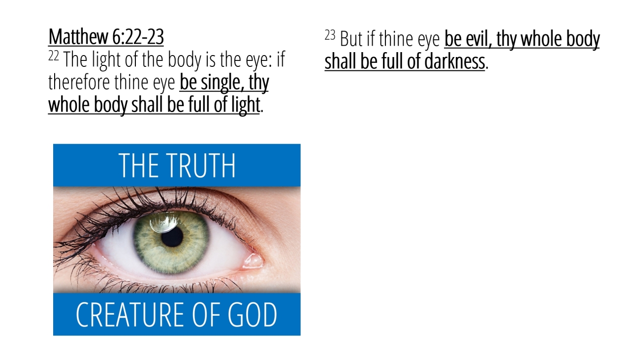 9 | Matthew 6:22-2322 The light of the body is the eye: if therefore thine eye be single, thy whole body shall be full of light. (2/5)