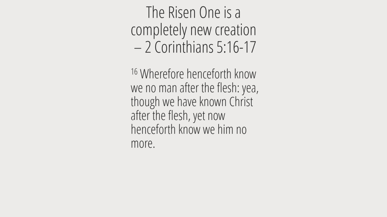 21 | The Risen One is a completely new creation – 2 Corinthians 5:16-17 (1/5)