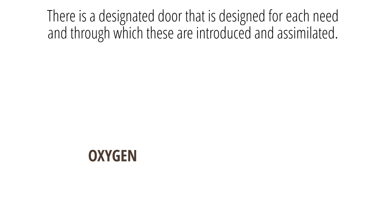 4 | There is a designated door that is designed for each needand through which these are introduced and assimilated. (8/11)