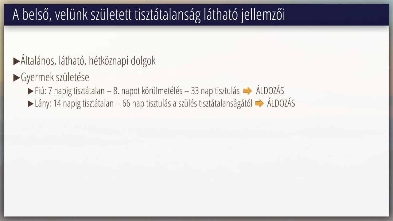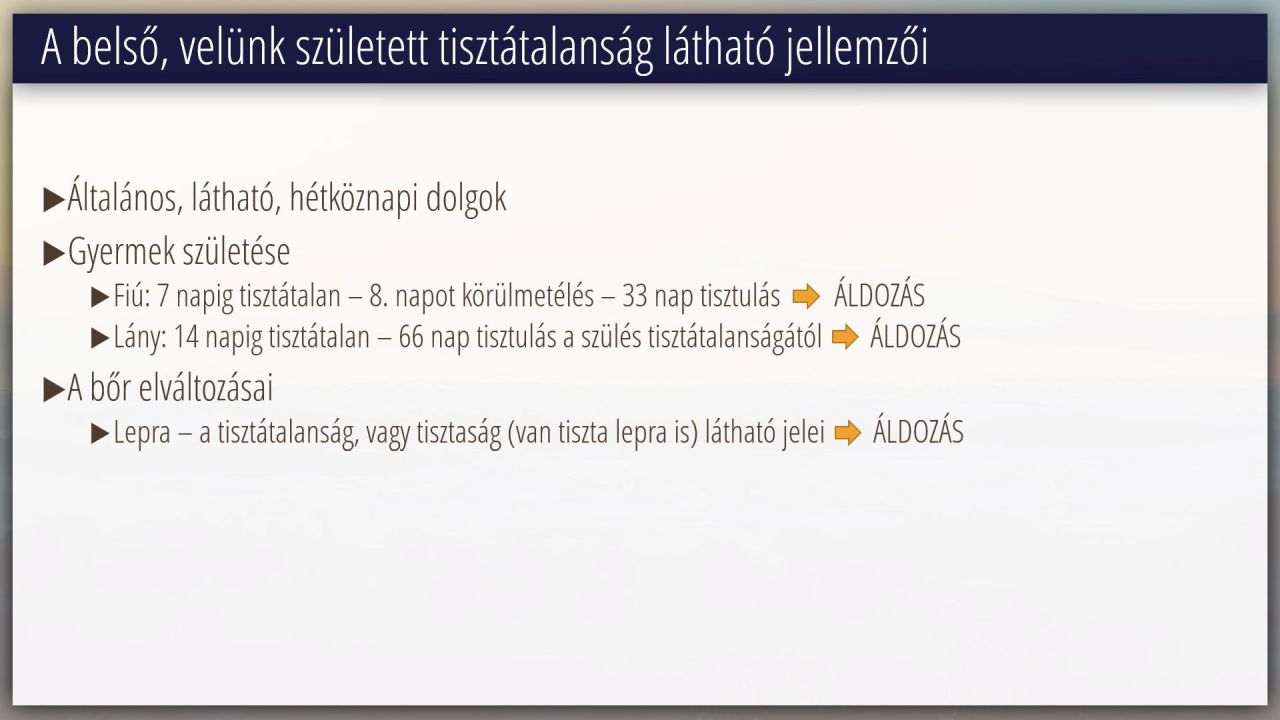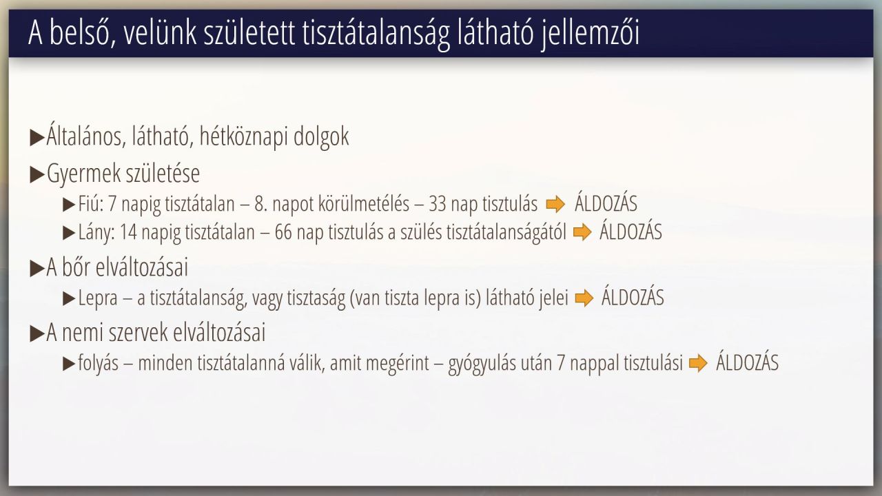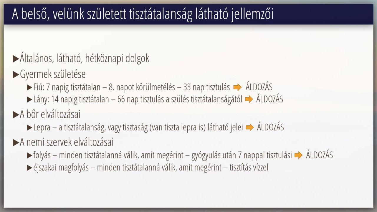 9 | A törvény értelmezése Mózes 3. könyve 11-15 fejezetek alapján (14/16)