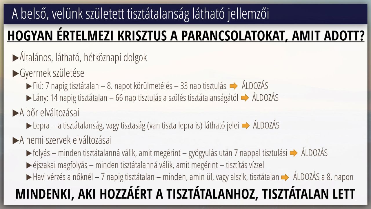 9 | A törvény értelmezése Mózes 3. könyve 11-15 fejezetek alapján (16/16)