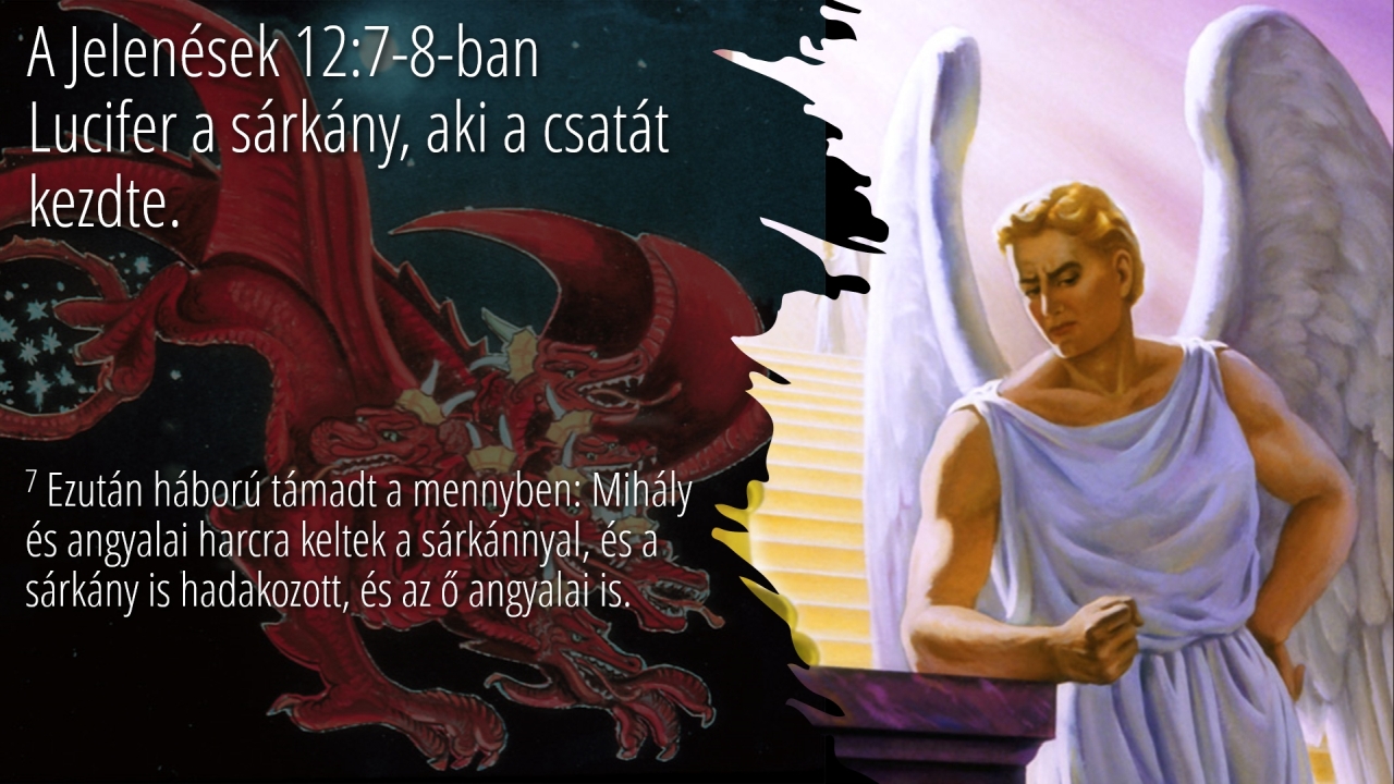21 | A Jelenések 12:7-8-ban Lucifer a sárkány, aki a csatát kezdte.
