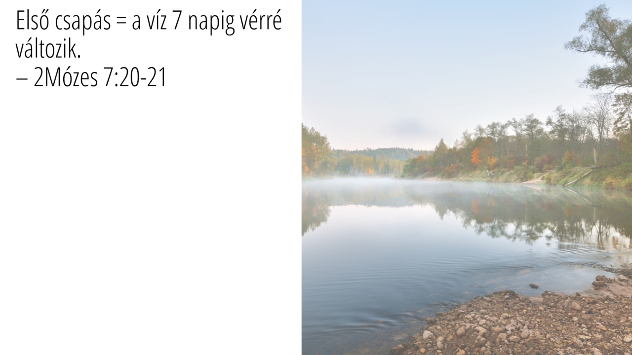 16 | Első csapás = a víz 7 napig vérré változik.– 2Mózes 7:20-21