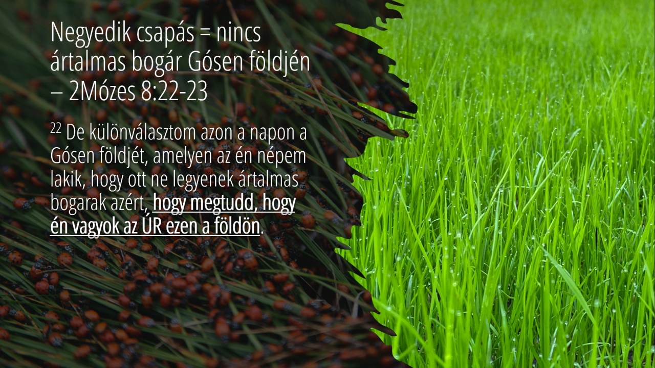 23 | Negyedik csapás = nincs ártalmas bogár Gósen földjén– 2Mózes 8:22-23