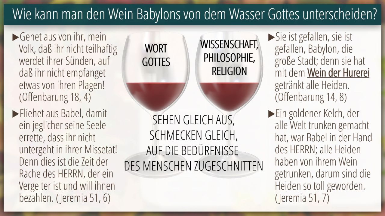 10 | Wie kann man den Wein Babylons von dem Wasser Gottes unterscheiden? (3/13)