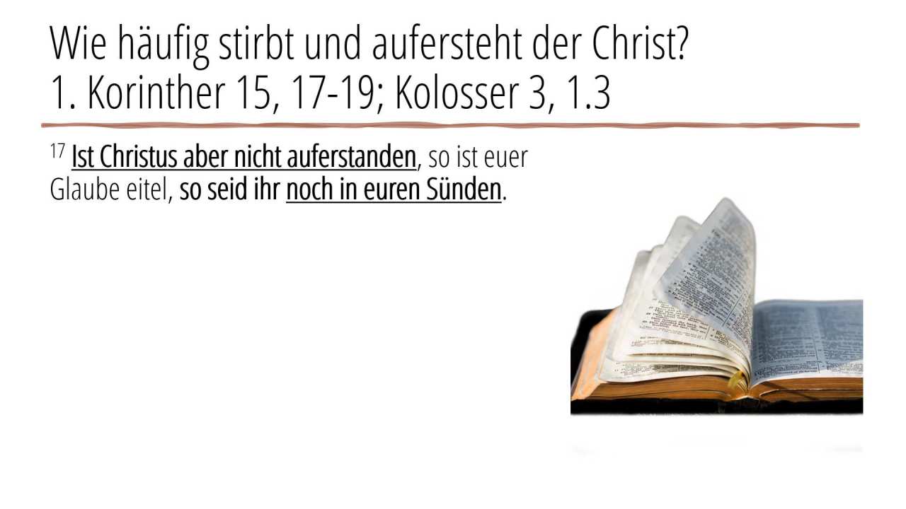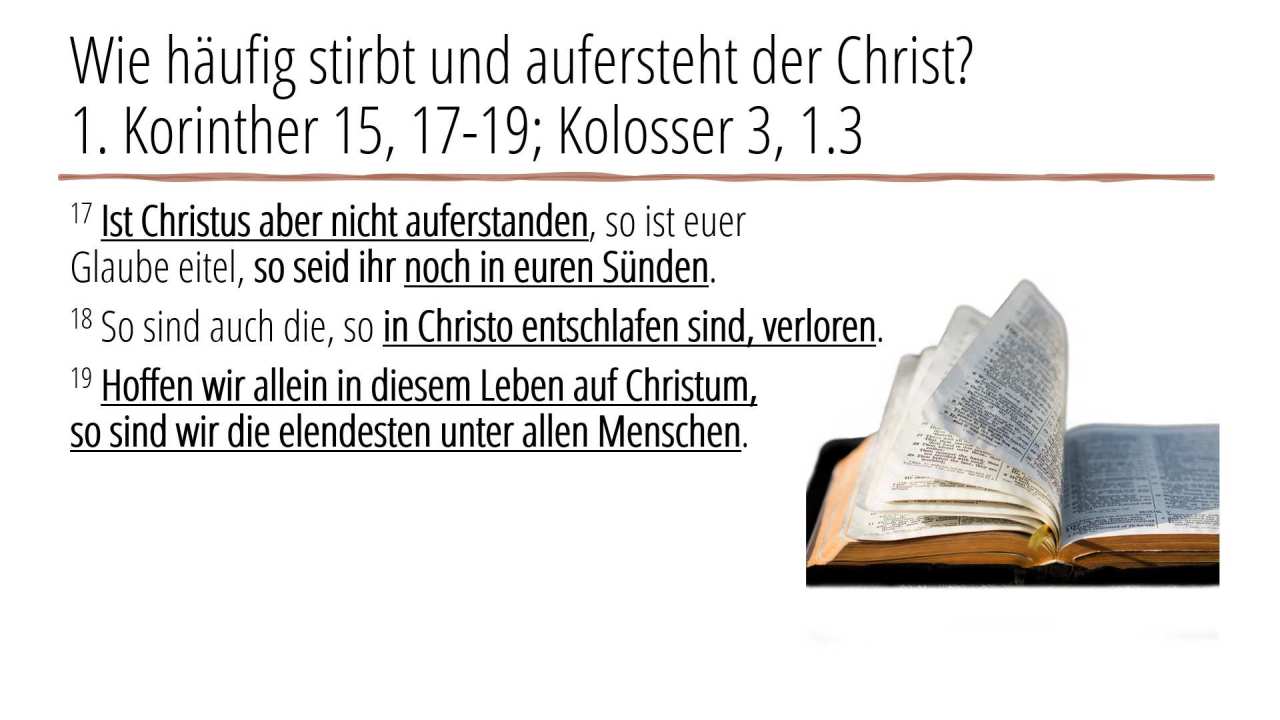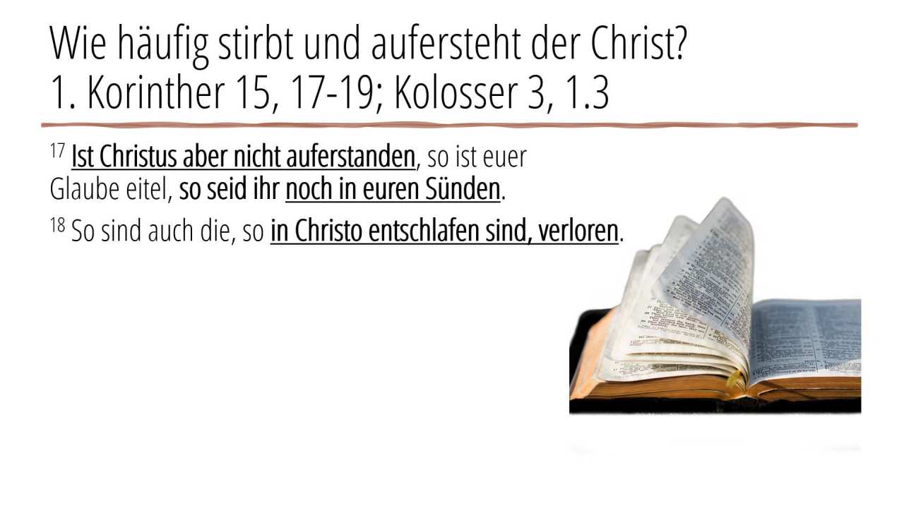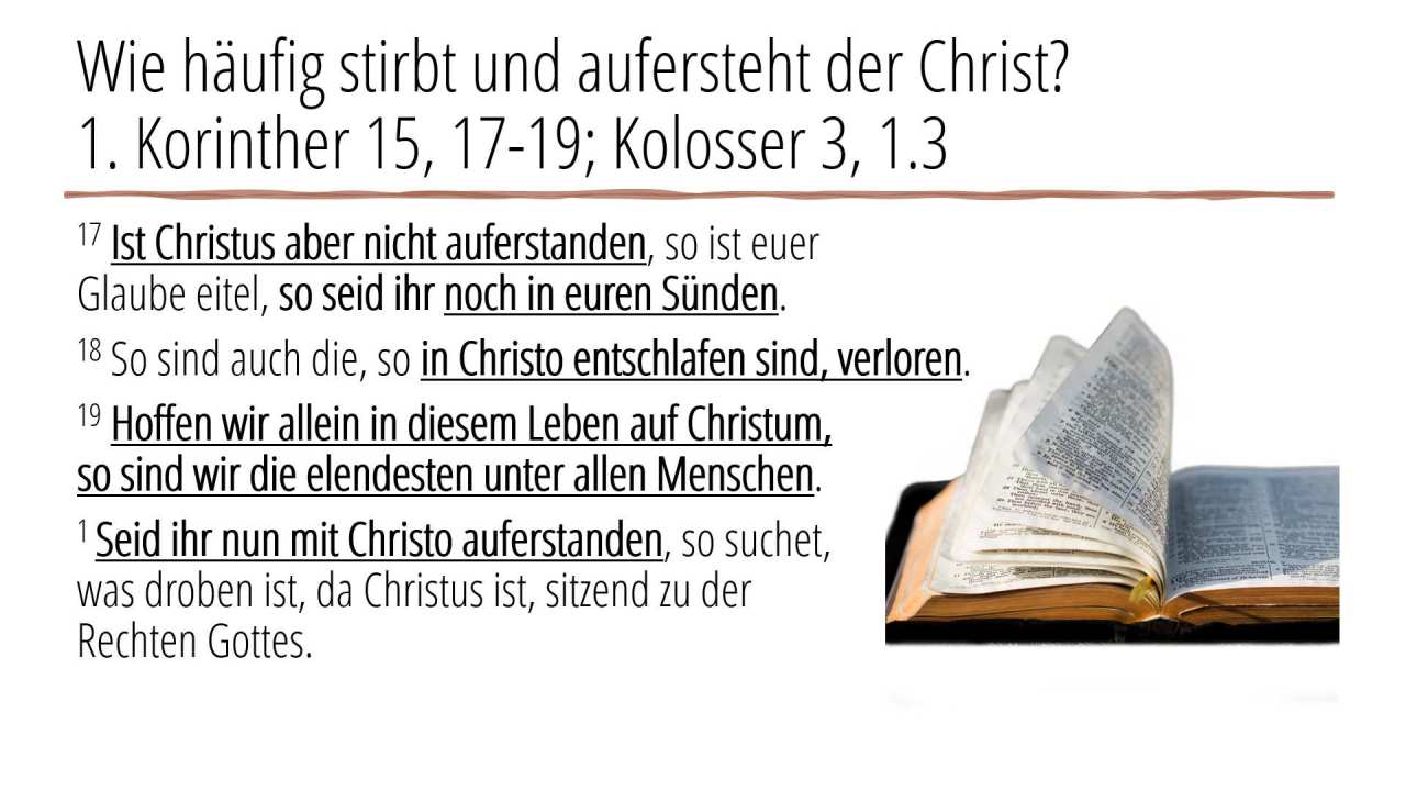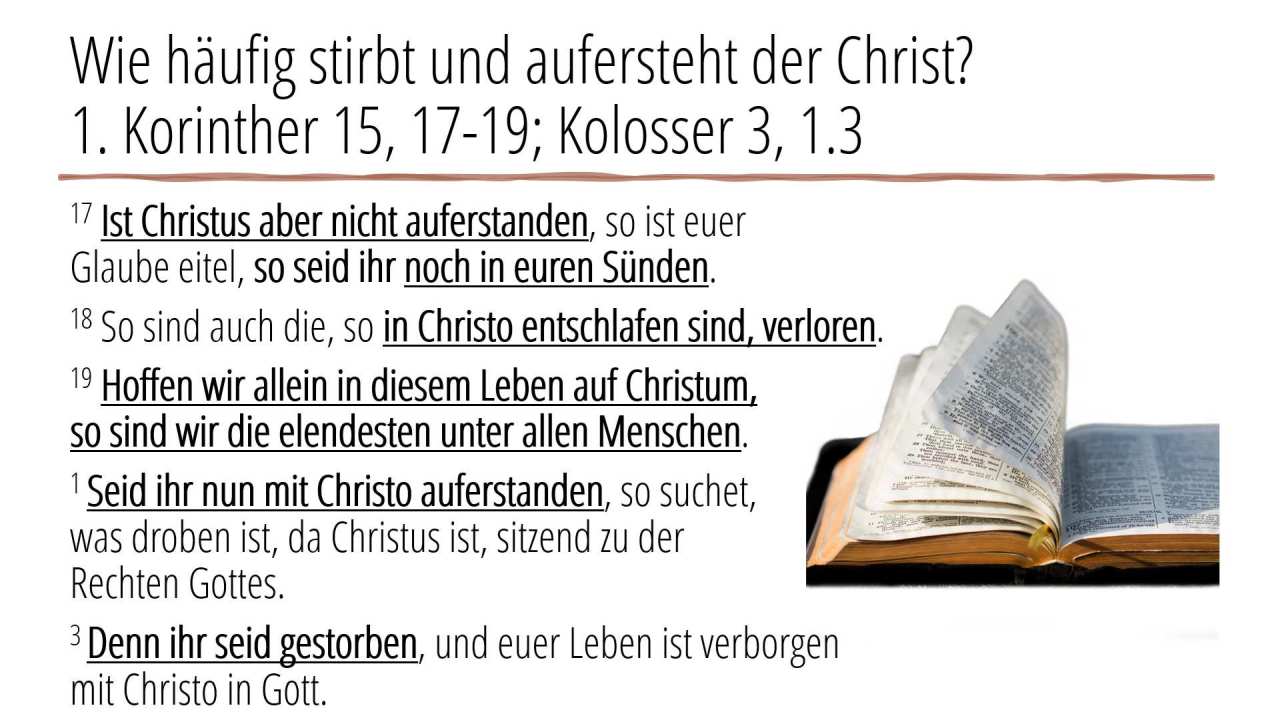 1 | Wie häufig stirbt und aufersteht der Christ?1. Korinther 15, 17-19; Kolosser 3, 1.3 (6/6)