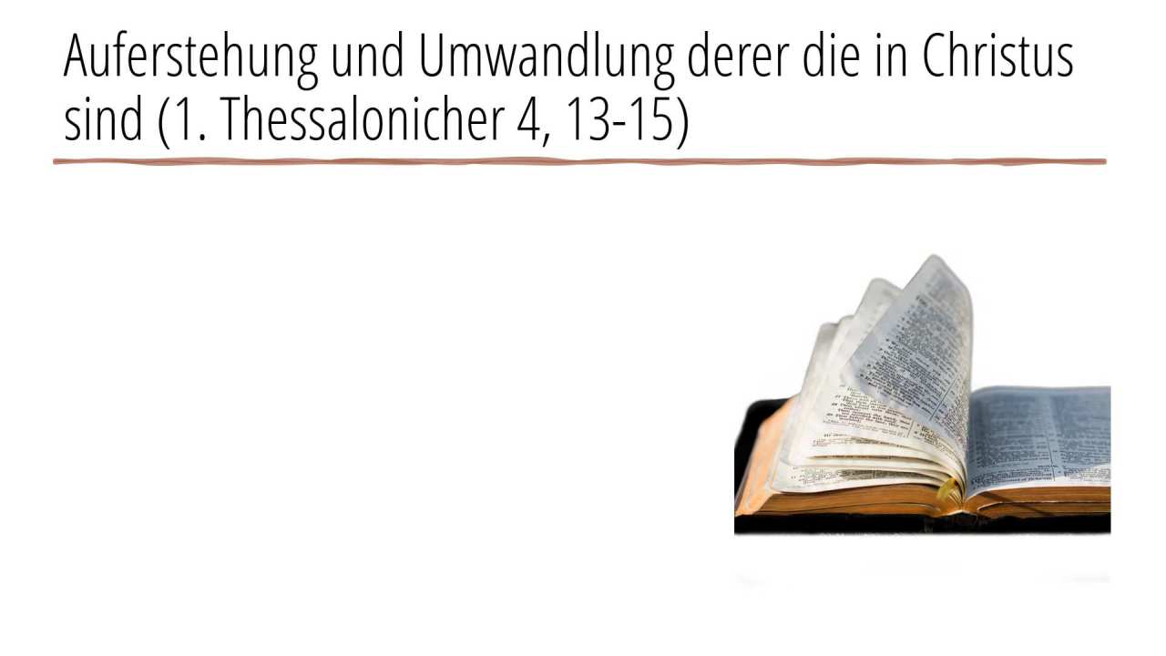 8 | Auferstehung und Umwandlung derer die in Christus sind (1. Thessalonicher 4, 13-15) (1/4)