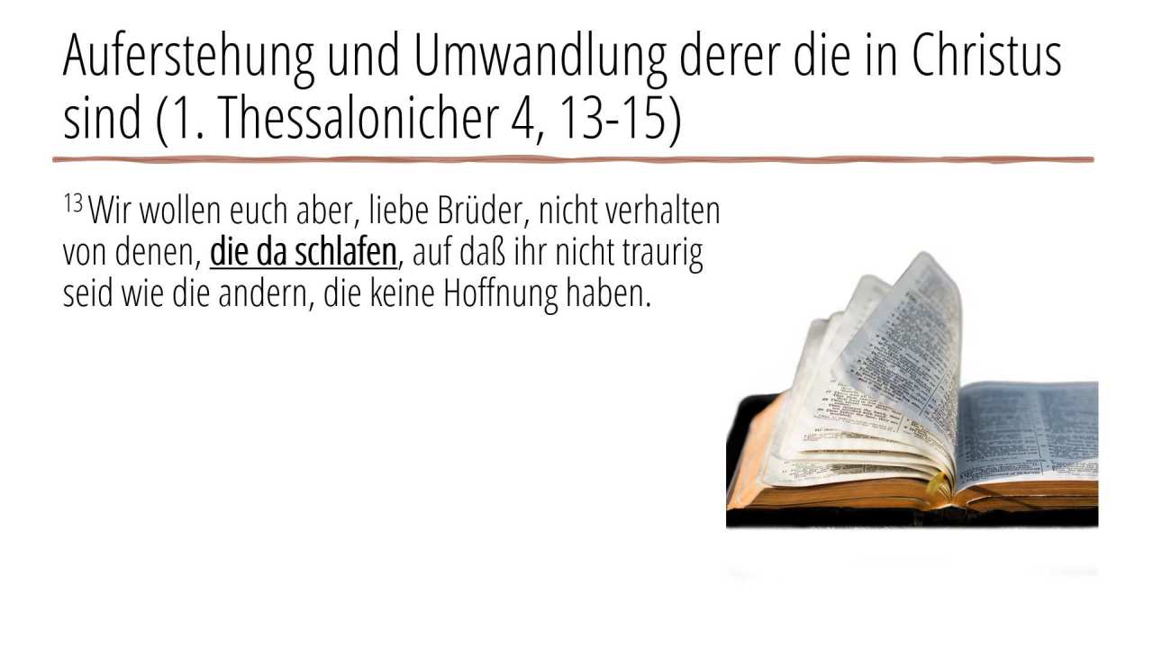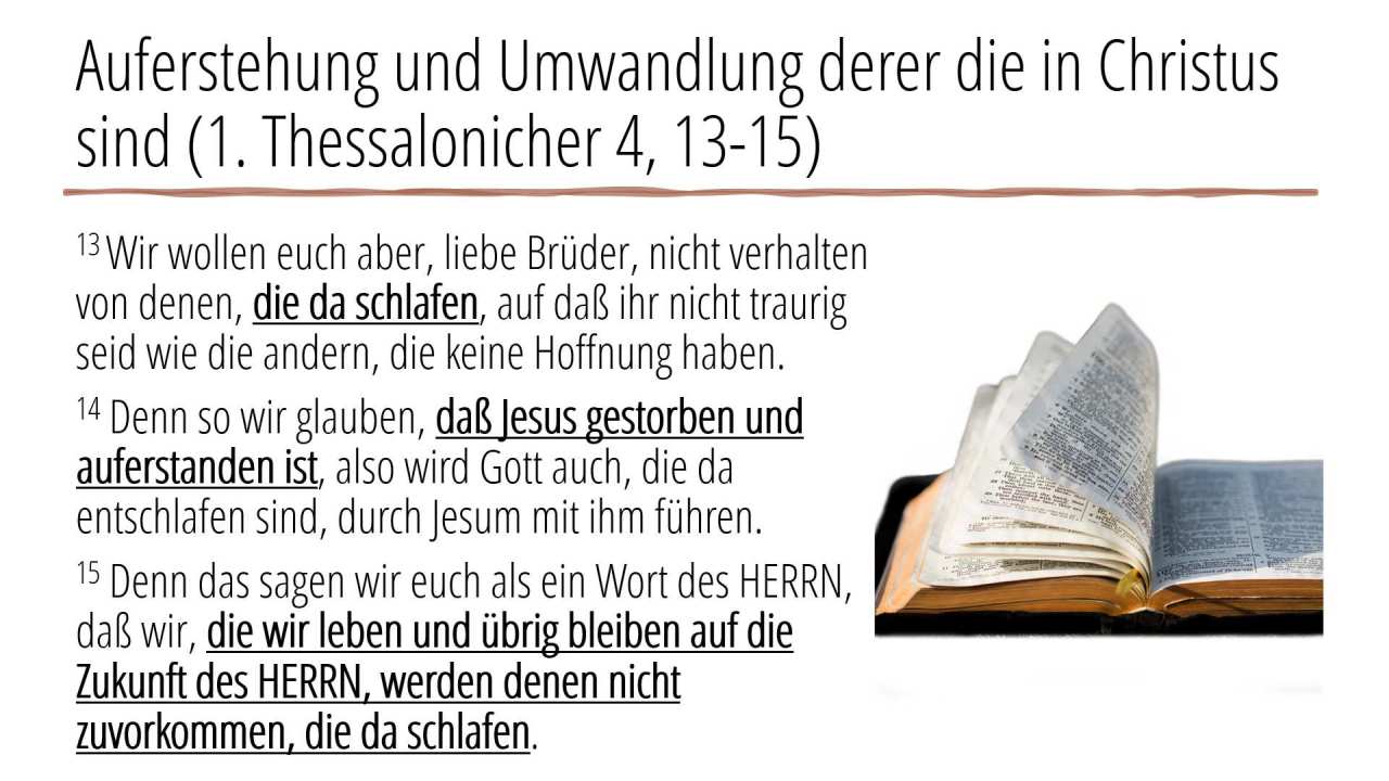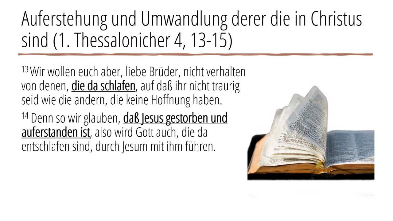 8 | Auferstehung und Umwandlung derer die in Christus sind (1. Thessalonicher 4, 13-15) (2/4)