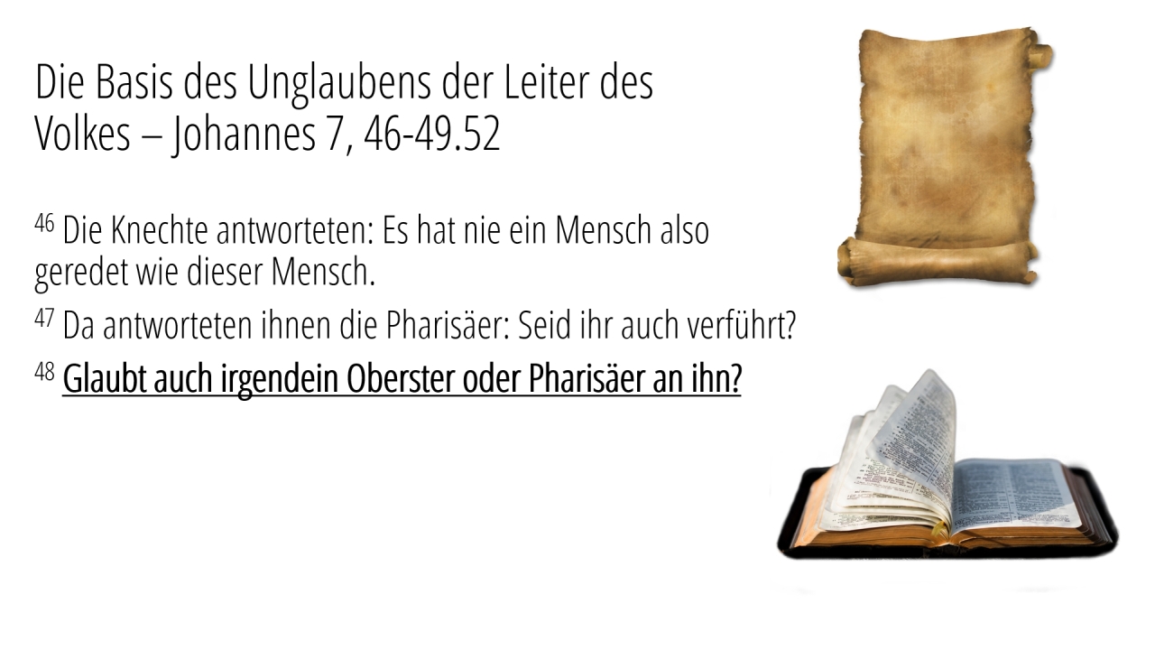 6 | Die Basis des Unglaubens der Leiter des Volkes – Johannes 7, 46-49.52