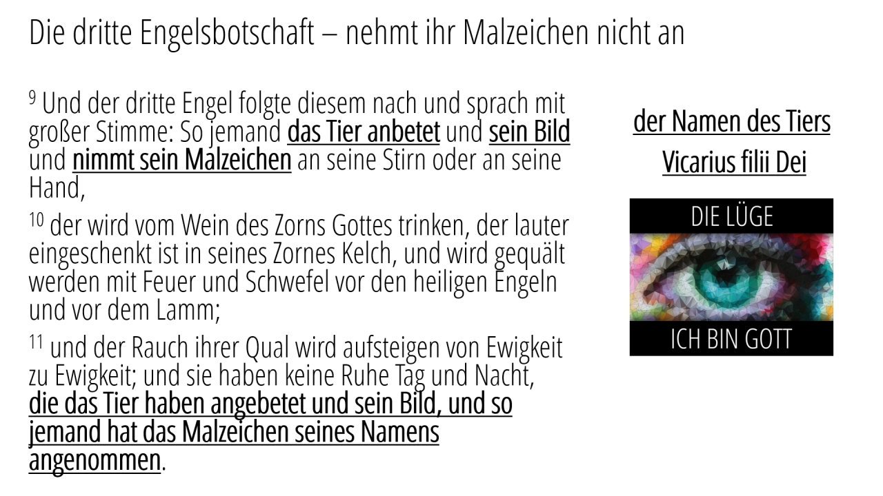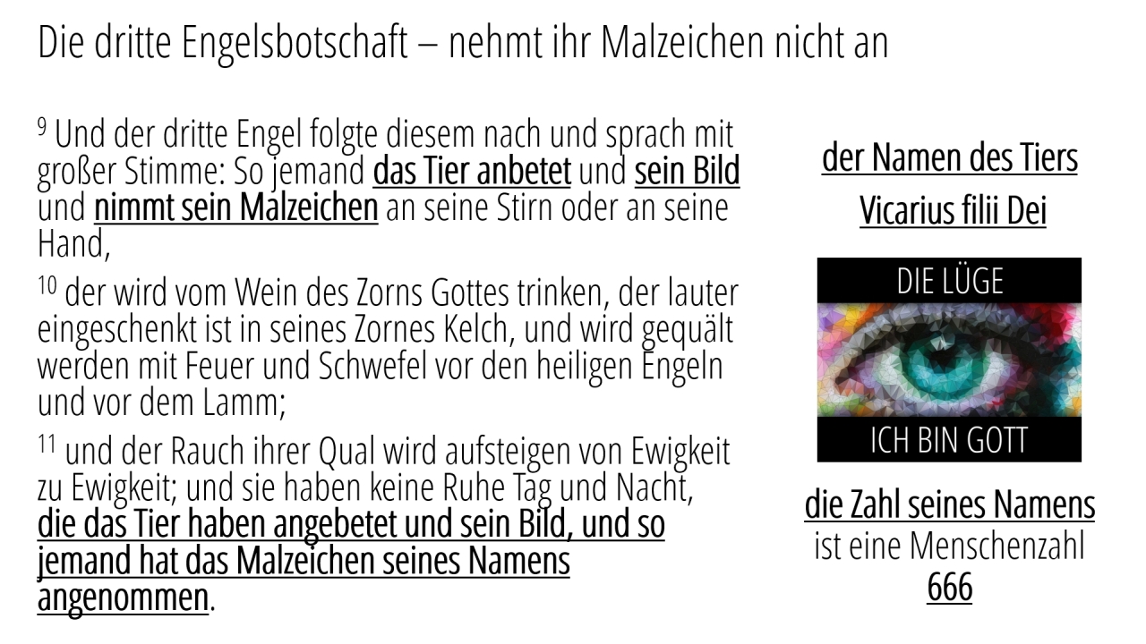 9 | Die dritte Engelsbotschaft – nehmt ihr Malzeichen nicht an (8/8)