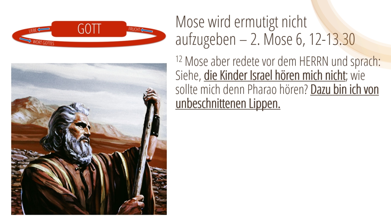 8 | Mose wird ermutigt nicht aufzugeben – 2. Mose 6, 12-13.30