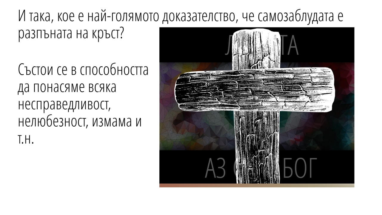 19 | И така, кое е най-голямото доказателство, че самозаблудата е разпъната на кръст?