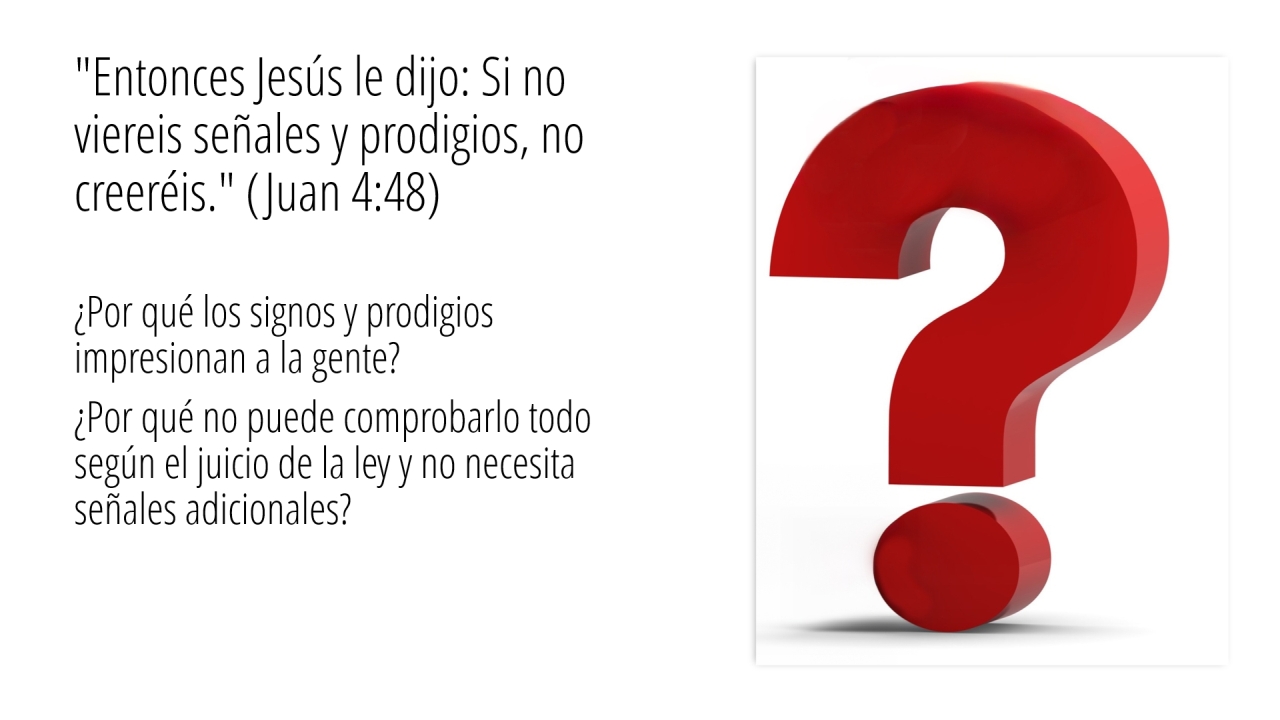 23 | "Entonces Jesús le dijo: Si no viereis señales y prodigios, no creeréis." (Juan 4:48) (2/4)