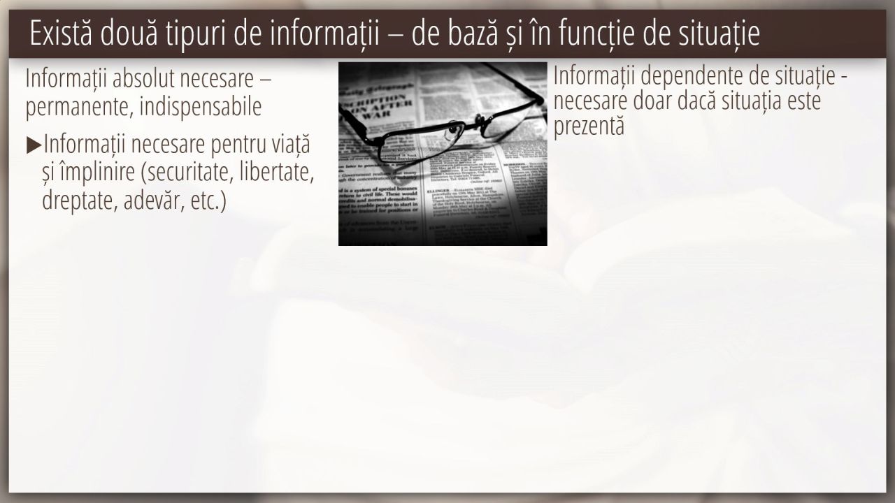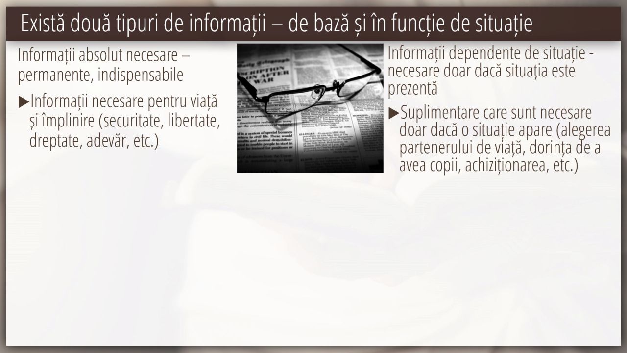 2 | Există două tipuri de informații – de bază și în funcție de situație (3/8)