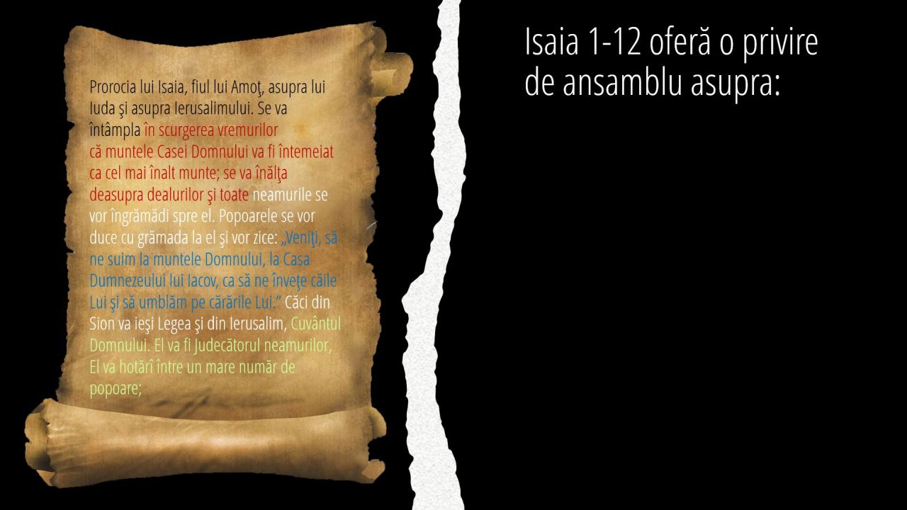 1 | Isaia 1-12 oferă o privire de ansamblu asupra: