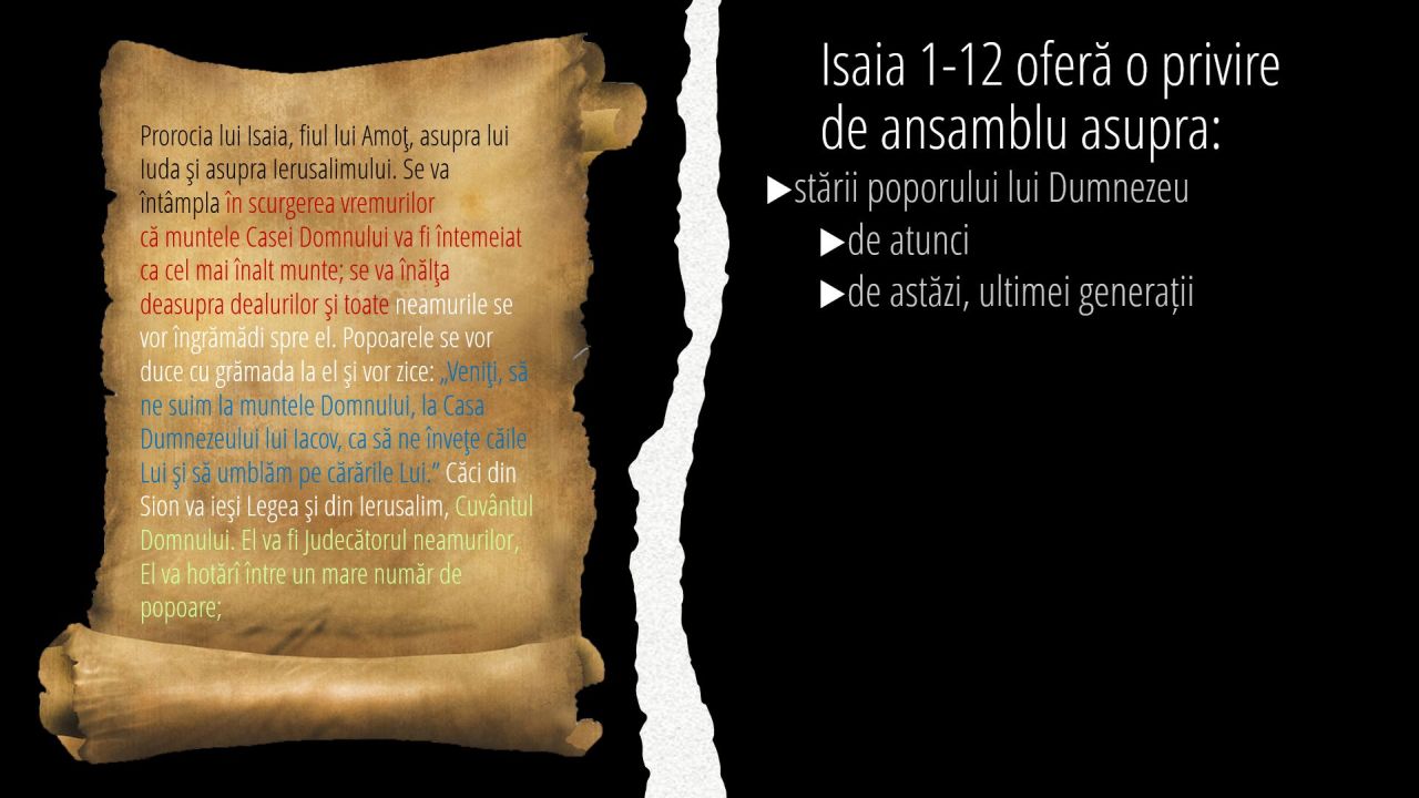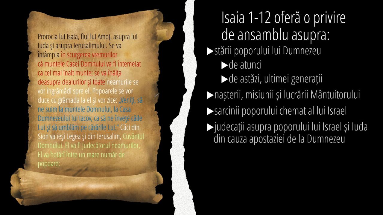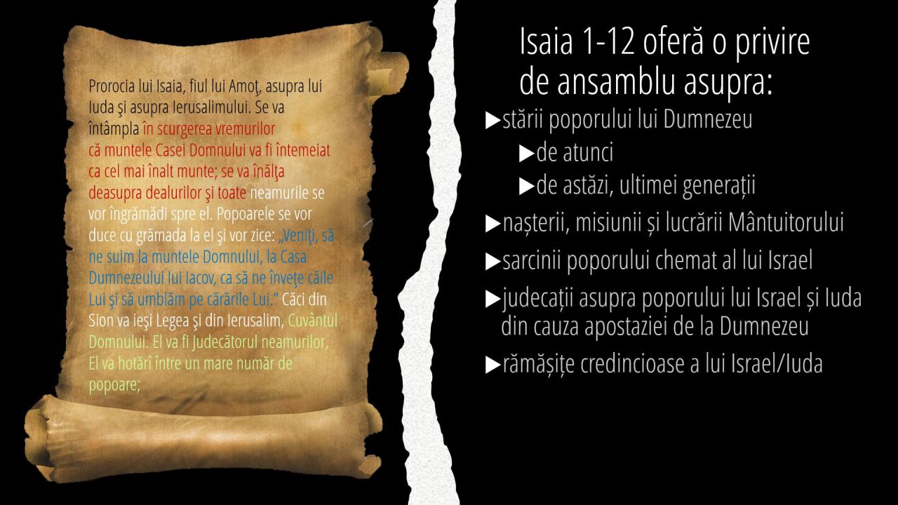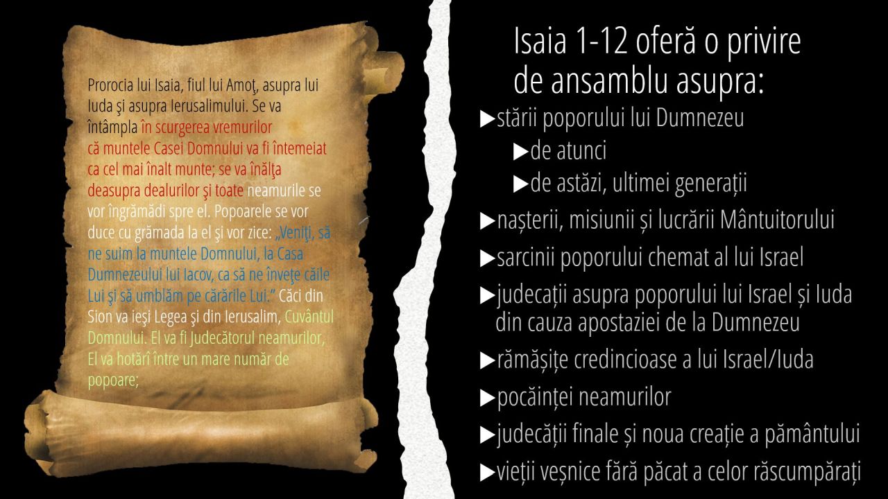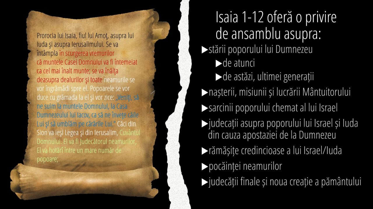 1 | Isaia 1-12 oferă o privire de ansamblu asupra: (7/11)