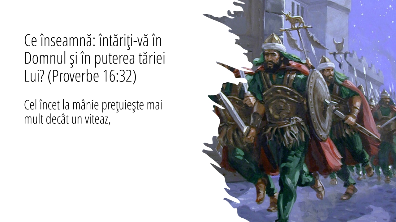 15 | Ce înseamnă: întăriţi-vă în Domnul şi în puterea tăriei Lui? (Proverbe 16:32)