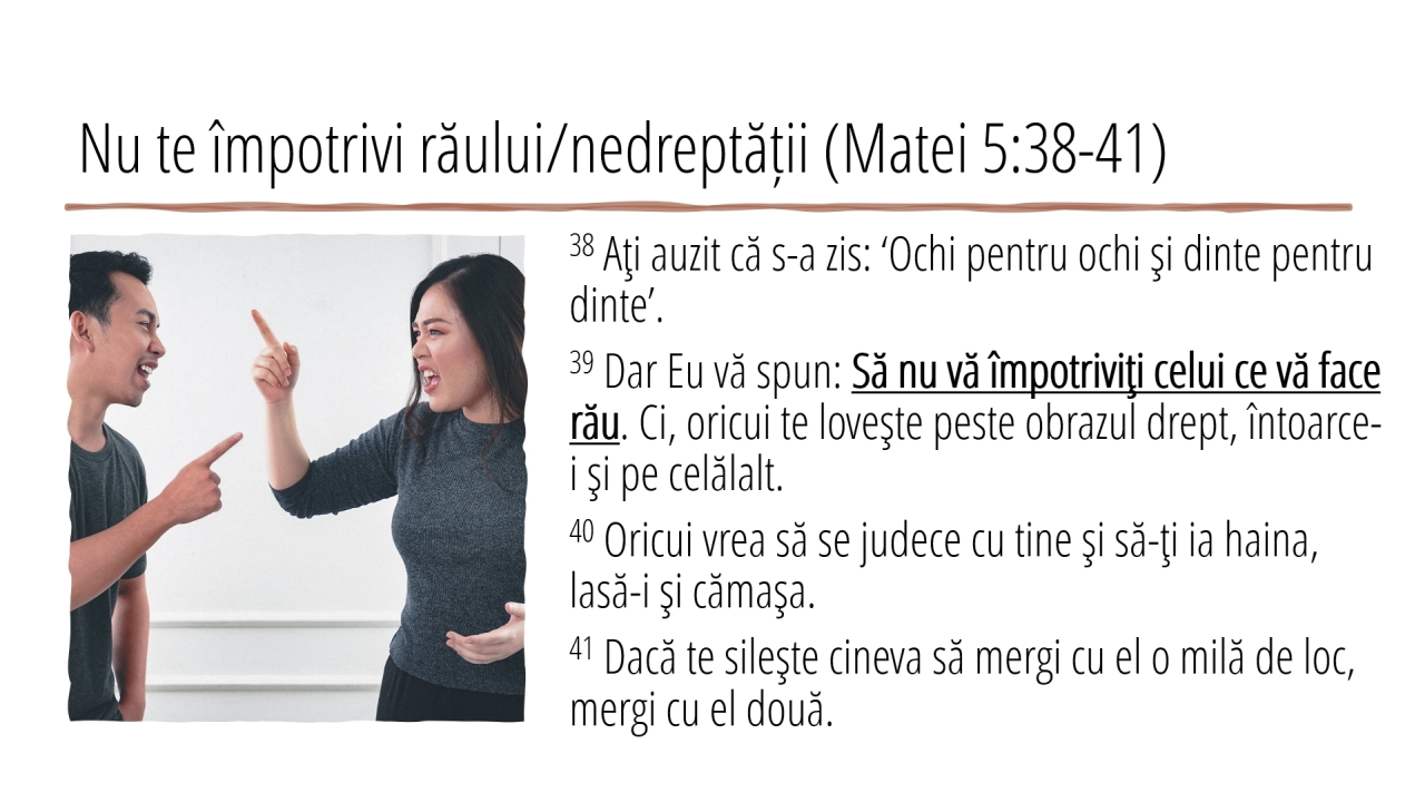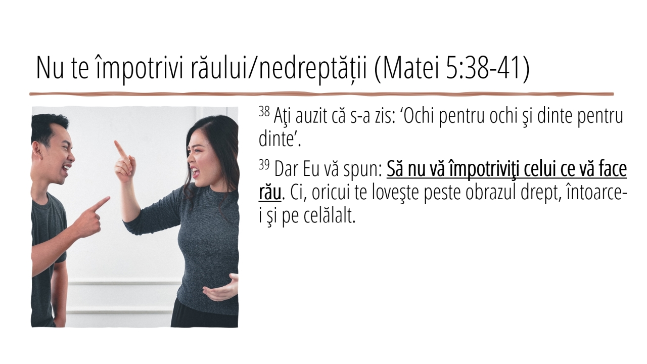 10 | Nu te împotrivi răului/nedreptății (Matei 5:38-41)