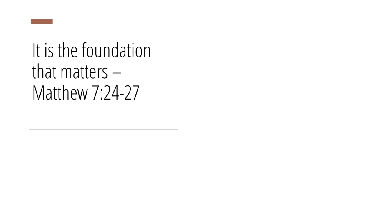 1 | It is the foundation that matters – Matthew 7:24-27 (1/4)
