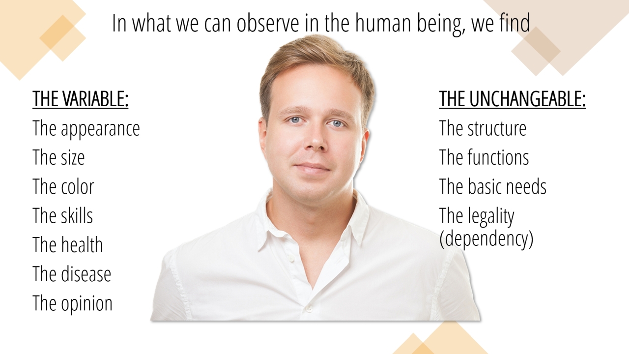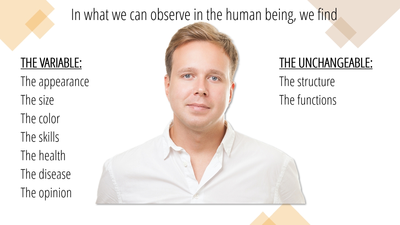 17 | In what we can observe in the human being, we find (1/10)