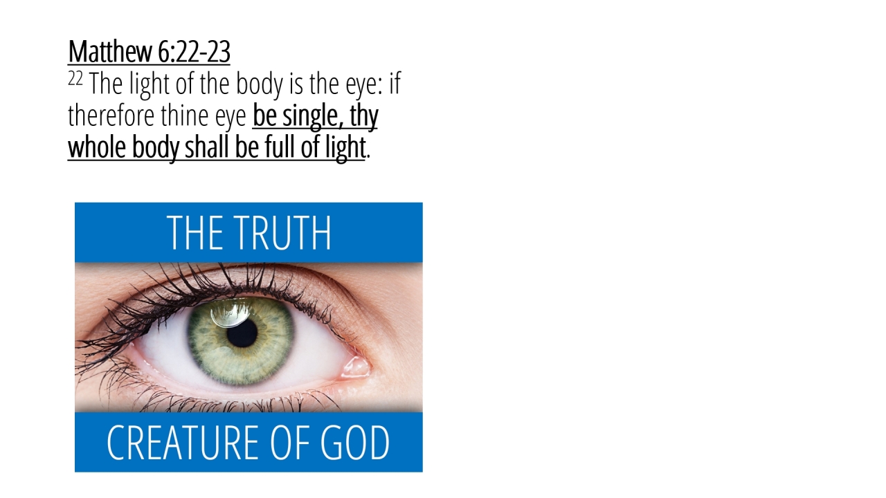 9 | Matthew 6:22-2322 The light of the body is the eye: if therefore thine eye be single, thy whole body shall be full of light. (2/5)