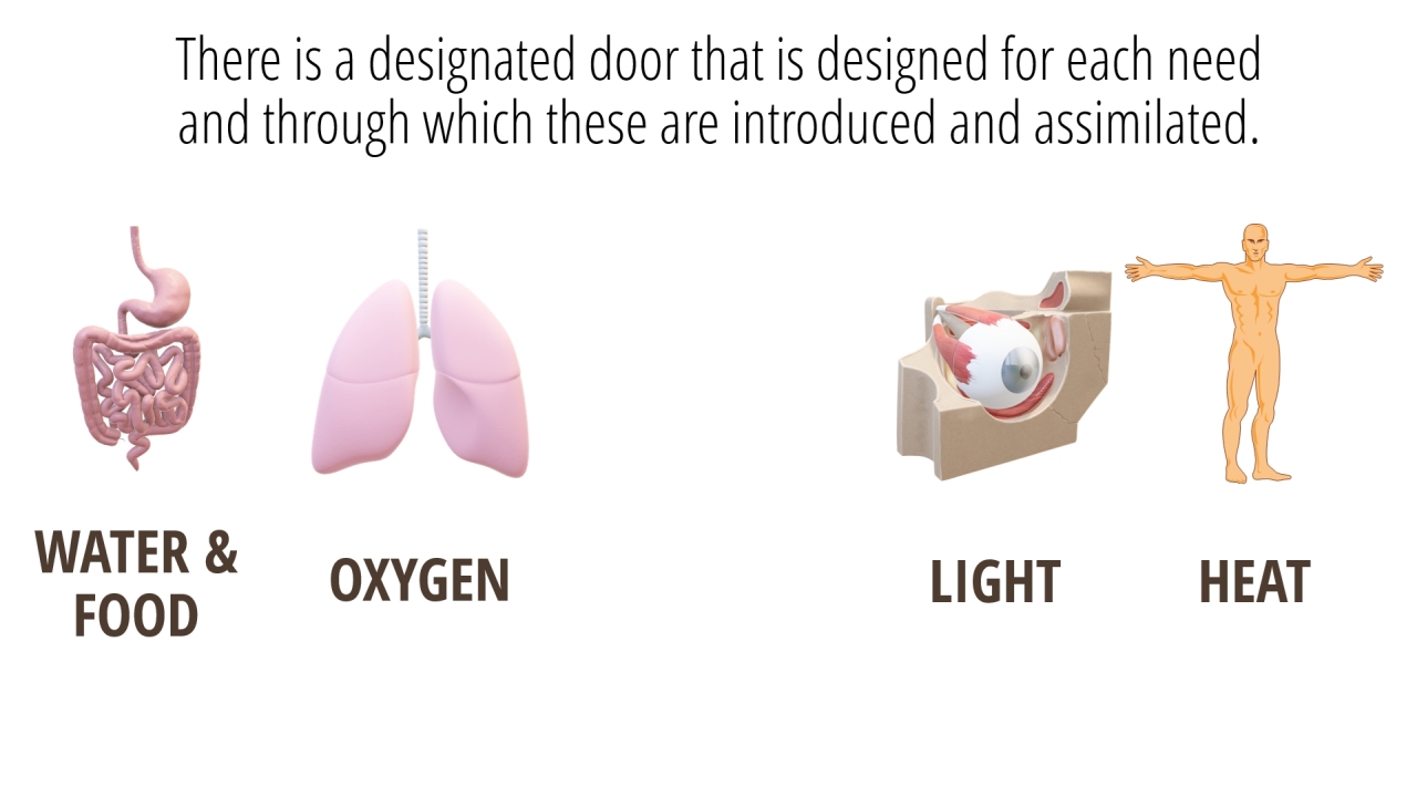 4 | There is a designated door that is designed for each needand through which these are introduced and assimilated. (3/11)